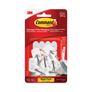 General Purpose Wire Hooks Multi-Pack, Small, Metal, White, 0.5 lb Capacity, 9 Hooks and 12 Strips/Pack