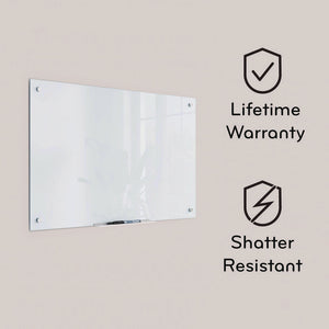 View Details- Enhance your workspace and boost your productivity with this sleek frosted glass board with marker tray that adds a contemporary touch to any office, classroom, or home decor.