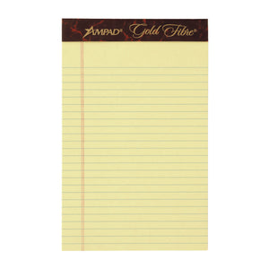 Gold Fibre Quality Writing Pads, Medium/college Rule, 50 Canary-Yellow 5 X 8 Sheets, Dozen