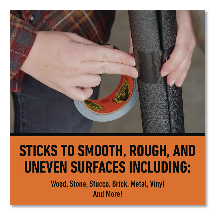 Gorilla tape is three times stronger for a hold that lasts. Made with double-thick adhesive, strong reinforced backing, and a tough all-weather shell, this duct tape is great for projects and repairs both indoors and out. It sticks to smooth, rough and uneven surfaces, including wood, stone, stucco, brick, metal and vinyl. Gorilla Tape, for the toughest jobs on planet earth®.
