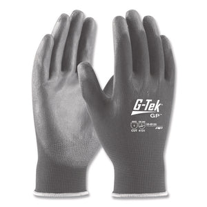 Keep yourself and your crew properly equipped. G-Tek® GP gloves are ideal for electronic and computer assembly, quality-control and similar applications. Cut-, puncture-, abrasion- and tear-resistant nylon shell features a seamless, breathable design for increased comfort and improved finger dexterity. Polyurethane-coated fingertips and palm allow you to get a better grip on wet and/or oily objects. Knit wrist helps prevent dirt and debris from entering your gloves. Machine washable.