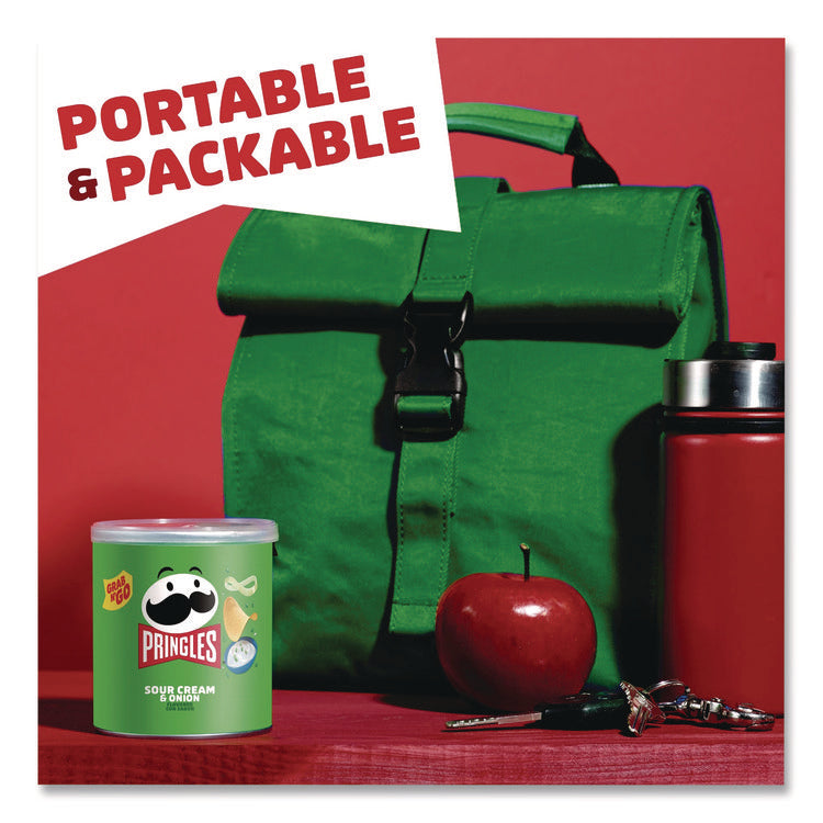 The crisp, hit-the-spot taste of potato seasoned with zesty sour cream and onion. Insanely light, crispy and never greasy, each crisp is bursting with savory flavor. With this convenient, individual size, portable can, it's easy to create your own snacking moments wherever and whenever; grab a can as a pick-me-up for after school or pack into lunch boxes. Bring a can to game time plus some for other Pringles fans. Stash a can in your work desk or pantry to enjoy anytime. Share Pringles at your next get-together to turn up the flavor and fun among family and friends. Get your hands on Pringles Sour Cream and Onion Potato Crisps for an irresistible taste experience that keeps you coming back, stack after stack.