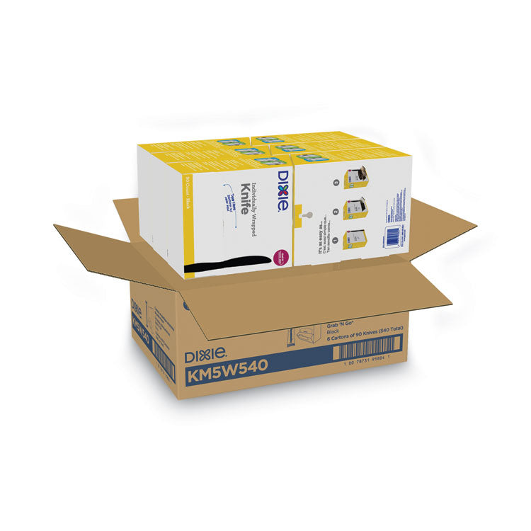 Grab'N Go Wrapped Cutlery, Knife, Plastic, Black, 90/Box, 6 Boxes/Carton