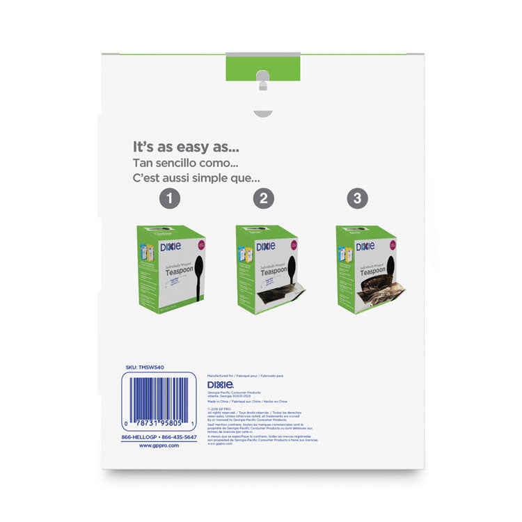 The Dixie® Medium-Weight Polystyrene Disposable Plastic Cutlery Grab-n-Go® lets you get rid of those messy, germ-collecting and wasteful open cutlery containers and replace them with individually wrapped forks in organized self-dispensing boxes. Dixie® Grab-n-Go® cutlery makes being well stocked super easy. The portable, disposable, easy-store boxes convert directly into quick-grab displays. Just open the box and put it on the counter (really). Grab-n-Go® cutlery puts a stay-well spin on break time. Each piece of the Dixie® plastic cutlery is protected by its own plastic covering, so the only person who touches it is the person who uses it. That's called good hygiene. These medium-weight individually wrapped plastic cutlery are great for most foods; perfect for office breakrooms, restaurants and more.
