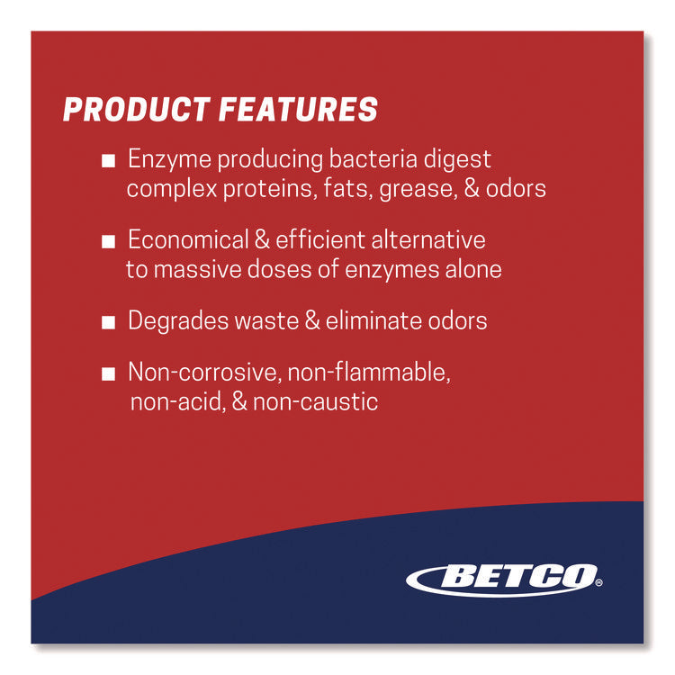 - Contains enzyme-producing bacteria to digest complex proteins, starches, oils, fats, greases and odors.
