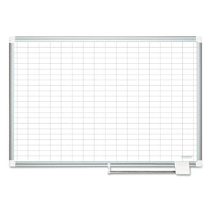 Gridded Magnetic Steel Dry Erase Project Planning Board, 1" x 2" Cells, 36" x 24", White Surface, Satin Aluminum Frame