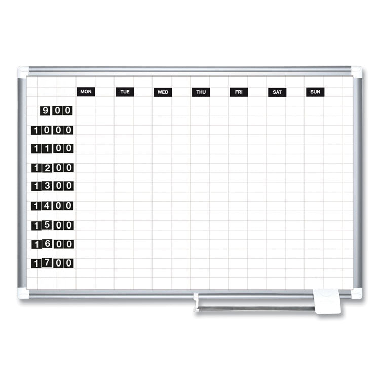 Organization is vital for the success of every business or enterprise. Planning boards are excellent tools that allow you to keep planning and tracking on time. Keeping important tasks on display, organizing work-groups or just planning ahead is practical and easy. Pale gray grid lines help ensure easy alignment of text and magnetic accessories. Magnetic lacquered steel dry erase surface is suitable for frequent use and allows you to post notes and messages as well as write. Sturdy aluminum frame features a sliding pen tray and an easy four-corner mounting system. Includes mounting kit.