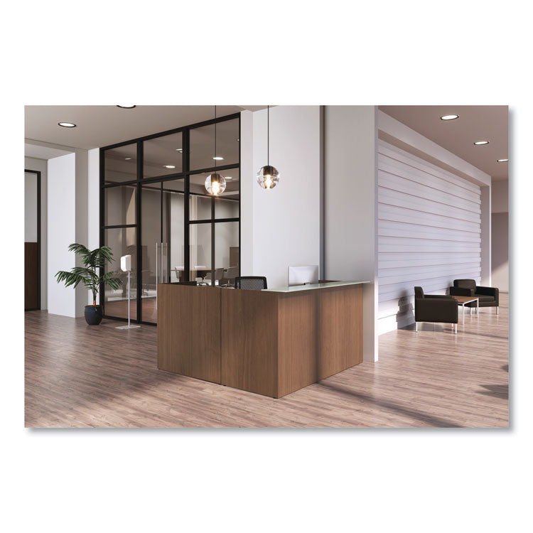 HON offers you an easily accessible sanitizing station stand that, when used with a hand sanitizer dispenser and your favorite hand sanitizer, helps employees stay bacteria free while on-the-go. Place throughout your facilities in high traffic areas for a quick way to fight germs between meetings or restroom visits. Compatible with most manufacturers' standard hand sanitizer dispensers. Free standing and no assembly required. Metal base for added stability.