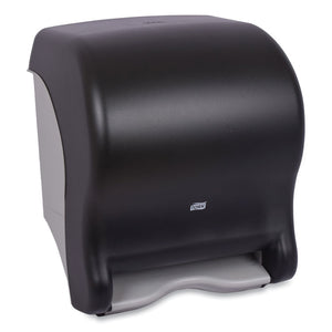 The Tork® Hand Towel Dispenser is an attractive dispenser that presents a clean, modern appearance that complements all décor. Translucent cover allows for "at a glance" inspection for refills. High impact plastic hides scratches and maintains image. The smooth cover with no recesses is easy to clean and maintain. High capacity for reduced costs and fewer service interruptions. Locking mechanism with key entry provides built-in pilferage control. High impact plastic and design help prevent breakage. Replaceable covers and lock fingers. No exposed metal parts to corrode or rust. Built to last.