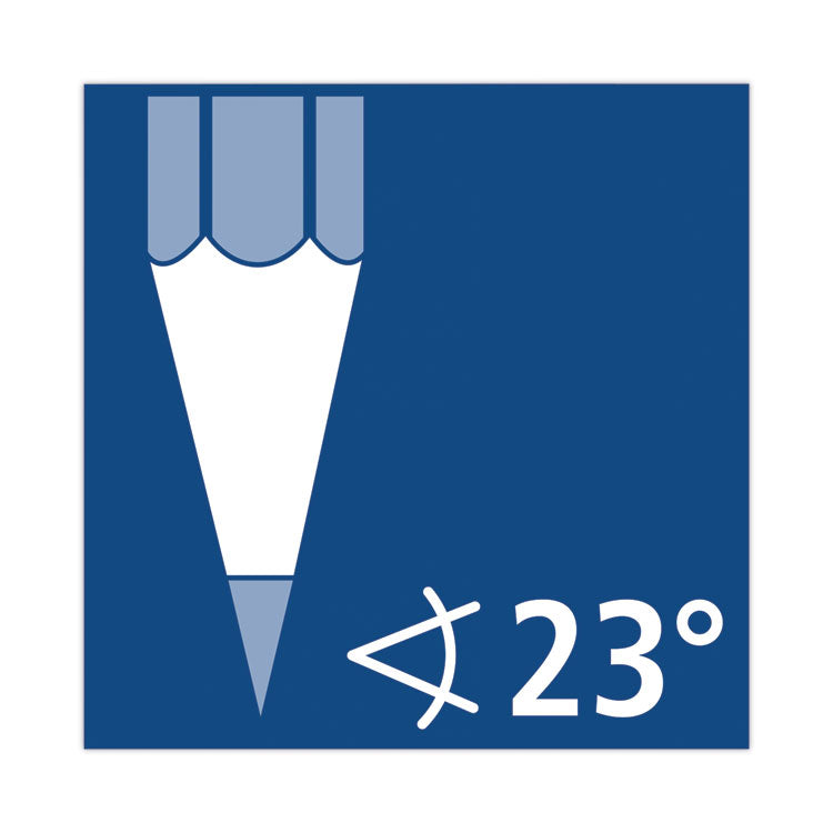 Metal sharpener with blade attached at three points for greater precision and sharper tips. The extra-long pencil gliding slot prevents wedging, while cutout makes it easy to remove broken tips. Contoured grip.