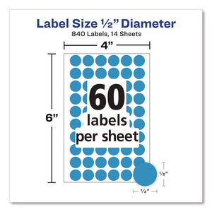 Handwrite Only Self-Adhesive Removable Round Color-Coding Labels, 0.5" dia, Light Blue, 60/Sheet, 14 Sheets/Pack, (5050)