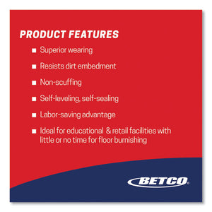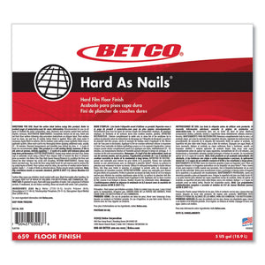 Betco Hard As Nails floor finish utilizes highly durable, internally cross-linked polymers blended to achieve a harder floor finish film. This unique chemistry results in a high-gloss, long-wearing finish that cures fast and hard, resists dirt embedment and scuffs. The perfect labor saving advantage for educational and retail facilities which have little or no time for floor burnishing.