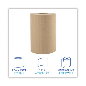Hardwound Paper Towels, 1-Ply, 8" x 350 ft, Natural, 12 Rolls/Carton