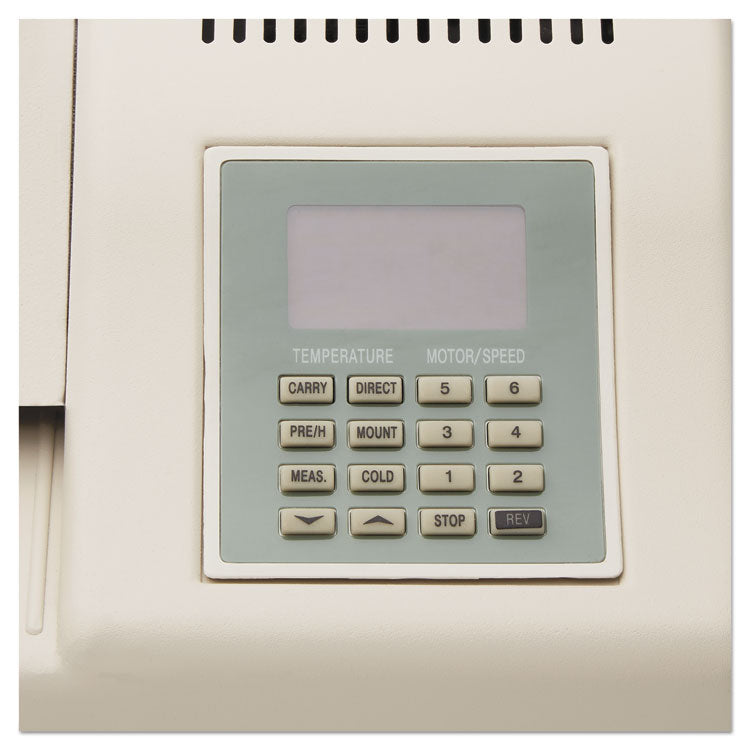 H600 Pro pouch laminator uses four heated rollers to provide professional lamination results. Easy-to-use keypad control panel with LCD readout. Accepts documents up to 13" wide. Laminates pouches between 1.5 and 10 mils in thickness. Variable temperature settings and speeds. Reverse switch helps clear jams. Cold setting available for smooth lamination results with pressure sensitive pouches.