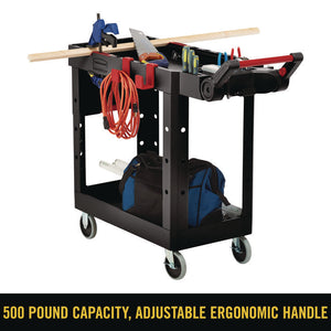 Heavy Duty Adaptable Utility Cart, Plastic, 2 Shelves, 500 lb Capacity, 17.8" x 46.2" x 36", Black