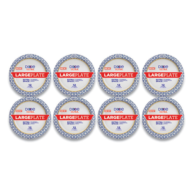 Heavy Duty Disposable Dinnerware, Large Plate, Paper, 11.5" dia, Floral, Blue/Yellow/White, 12/Pack