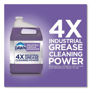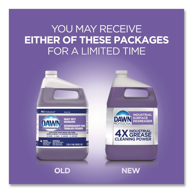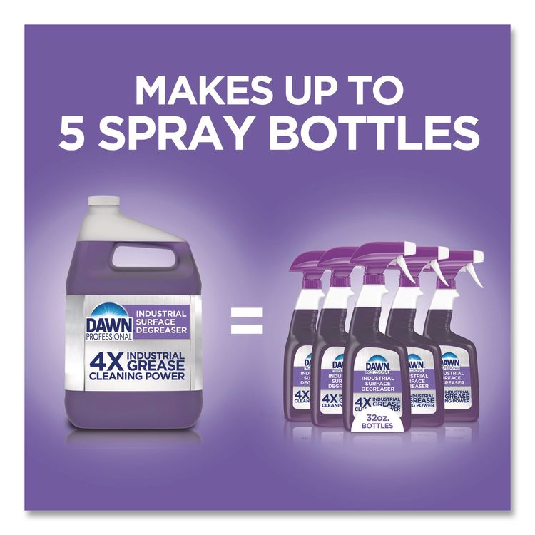 Cuts through tough jobs with the grease-cutting power of Dawn. This industrial degreaser is designed to clean your toughest grease problems. It can be used full strength as a multi surface cleaner on buildup on range hoods, fryers, ovens and walls. It is safe for use on food-contact surfaces when followed by rinsing with water. Excellent for cleaning corral areas and dumpsters and can even be used for cleaning heavy crank case oil from concrete drive-thru pads and sidewalks. This Dawn Professional product is phosphate-free, noncaustic, nonflammable, and formulated for employee safety. It's also designed to clean waxed tile floors without damaging the wax, when properly diluted, and can spot-clean where heavy grease buildup exists.