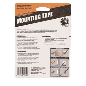 Gorilla Heavy Duty Mounting Tape is a double-sided tape that mounts in an instant, for a permanent, weatherproof bond. The industrial strength, double-sided tape delivers a heavy-duty bond. Perfect for indoor and outdoor projects and sticks to smooth and rough surfaces. Completing projects is easy with this tough, double-sided tape. Mount, build, and repair!