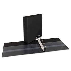 With this Heavy-Duty Nonstick View Binder you get one-touch operation and the durability required for everyday use. Nonstick material won't lift ink or toner off printed pages. Tear-resistant DuraHinge® design is stronger and lasts longer. DuraEdge® feature makes the sides and top more pliable, providing greater split resistance. Deeply textured film offers a smoother finish and features a linen pattern for a high-quality look and feel. Four clear, interior pockets provide extra storage space. Wider front and back panels fully cover standard dividers and sheet protectors. Slant rings have a higher page capacity when compared to the same size round rings. Pages lie flat with back-mounted rings (exposed rivets on back). Customize your title page using free templates and designs at Avery® Design & Print Online.