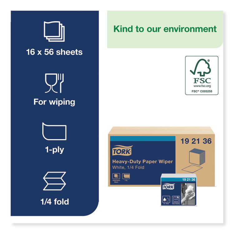 Heavy-Duty Paper Wiper 1/4 Fold, 1-Ply, 12.5 x 13, White, 56/Pack, 16 Packs/Carton