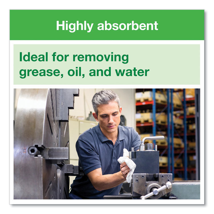 A tough multi-purpose one-ply paper wiper, the Tork® Heavy-Duty Paper Wiper won't tear easily. Absorbs both oil and water efficiently. Soft cloth-like feel makes it a good choice for wiping solid surfaces or hands and faces.