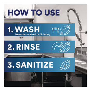 - Simply spray items, wipe away grease, rinse with water and sanitize.