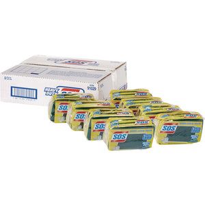 For those really tough cleaning jobs, S.O.S® Heavy Duty Scrubber Sponges get the job done. This durable and long lasting sponge has a heavy duty scouring pad on one side and a soft absorbent cellulose sponge on the other to help you tackle hard to clean messes in kitchens, bathrooms, garages and more. The powerful scouring sponge is made with biodegradable soap and detergents and features a unique easy-to-hold shape that allows you to clean hard-to-reach crevices easier and faster. It's also bigger and thicker to soak up liquids and messes and is ideal for heavy cleaning or removing tough stains. Use it to quickly wipe down countertops and sinks or scrub away tough messes on the stove or in the oven. This sponge is dishwasher safe so you can toss it in the top rack to conveniently clean. Ideal for use in restaurants, cafeterias, hotels, break rooms and other commercial facilities. Cleaning is quick and easy with S.O.S®.