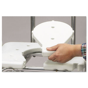 Select a transfer seat that takes the pressure off of the caregiver - this seat slides side-to-side to minimize physical strain on user or caregiver. Blow-molded plastic seat and back with textured, non-slip surface designed for comfort and strength. Durable, lightweight, aluminum frame. Cut-out easily removes for perineal access. Adjustable legs with suction cup, slip-resistant tips. Nylon strap locks and holds seat in place to provide additional safety. Seat height adjusts from 19" to 23" in 1" increments. Easy-to-use bench weighs in at only 14.5 lbs.