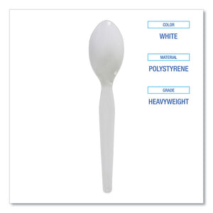 Heavyweight Polystyrene Cutlery, Spoon, Plastic, White, 1,000/Carton
