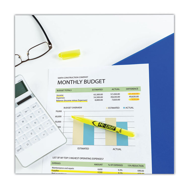 The Smear Safe® feature provides smear protection across most pen, marker and inkjet inks. Durable tip for smooth highlighting- won't fray. Use tip to highlight or underline. Sturdy clip for your pocket, organizer or binder. Cap can be left off for one week without dry-out. Quick-drying. Safe for office, school, or home.