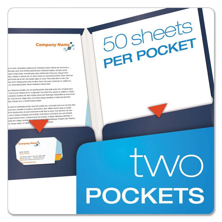 High Gloss Laminated Paperboard Folder, 100-Sheet Capacity, 11 X 8.5, Navy, 25/box