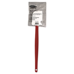 The Rubbermaid Commercial High Heat Spatula is an all-purpose scraper ideal for use in any industrial-size kitchen. This rubber spatula has a red nylon handle with white silicone blade. The scraper resists heat up to 500 degrees Fahrenheit (260 degrees Celsius) and is stain resistant and will not scratch cookware. The spatula measures 16-1/2 inches and is commercial dishwasher safe. This rubber spatula is certified to National Sanitation Foundation (NSF) standards for food safety.