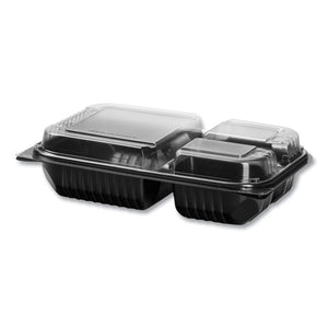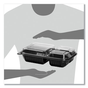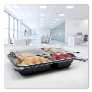 Hinged-Lid Dinner Box, 3 Compartments, 32 oz, 11.5 x 8.1 x 3, Black/Clear, Plastic, 100/Carton