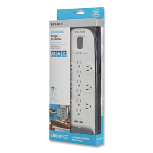 Home/Office Surge Protector, 12 AC Outlets, 6 ft Cord, 3,996 J, White/Black