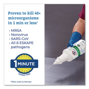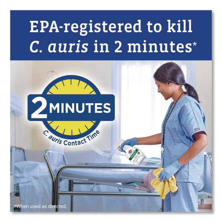 Better surface compatibility, less residue. Clorox Healthcare Hydrogen Peroxide Cleaner Disinfectants are made with no added fragrances or harsh odors and are EPA registered to kill over 40 microorganisms in 1 minute or less, including SARS Co V2 in 30 seconds on hard nonporous surfaces when used as directed. Worry less with noncorrosive disinfectants tested on medical devices and save time with fast non bleach disinfectants. Clorox Healthcare hydrogen peroxide disinfectant is a bleach-free sanitizer that is EPA registered to kill bacteria on soft surfaces in 30 seconds. Use in hospitals, operating rooms, outpatient surgery centers, emergency rooms, dental offices, veterinary offices and long term care facilities. Use as directed, refer to the EPA master label for a complete list of organisms and contact times.