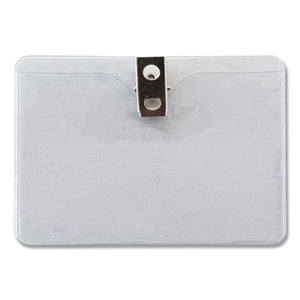 ID Badge Holders with Clip, Horizontal, Clear 4.13" x 3.38" Holder, 3.75" x 2.75" Insert, 50/Pack