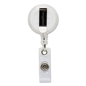 These compact, round, plastic card reels connects easily to your ID or security badge holder for convenient displaying. Slide-style clip attaches to a belt, pocket or purse; ensures that your ID card stays securely with you at all times. Extends 30 inches and retracts automatically. Provides easy access--reel it out to show your badge to security or for use at the access panel.