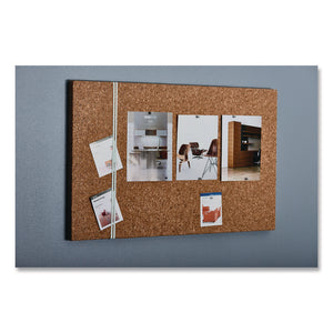 Create a sophisticated canvas to peak visual interest while maintaining an upscale appearance. This board's premium, high-density, natural-cork surface features a distinctive, marbled grain that looks amazing as it ensures secure holding performance that will withstand the heaviest of use environments, while maintaining excellent self-healing properties to mask all previously made pin holes. A frameless design, with seamless wrapped edge contours and a prominent 1.56" depth, provides an outstanding, attention-grabbing aesthetic. All board sizes are optimized for the best viewing experience. Solid wood core supports secure, integrated metal corner brackets. Its flexible, modular configuration allows it to hang flush, side-by-side with additional boards, whether oriented horizontally or vertically. Regardless of the mounting option chosen, installation is a breeze, entirely user-friendly and very forgiving. All hardware is included; and once the board's mounted, that hardware is entirely hidden from view.