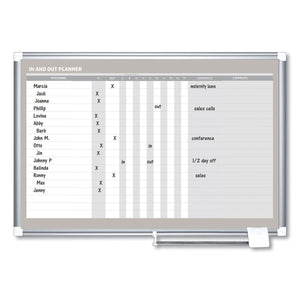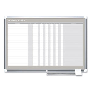In-Out Magnetic Dry Erase Board, 18-Person Tracking, 36" x 24", White Surface, Satin Aluminum Frame