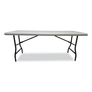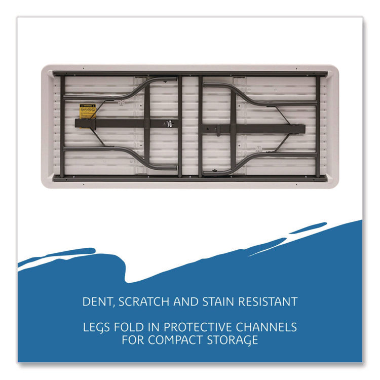 Folding tables so multi-functional you'll wonder how you lived without them. Industrial-grade construction more than stands up to the tough demands that offices, schools, hotels and conference centers make. An attractive, contemporary design ensures they'll fit in wherever you place them. Dent- and scratch-resistant, easy-to-clean top is fabricated of blow-molded high-density polyethylene and features soft-beveled radius edges. Powder-coated, round metal-tube legs feature fold-out braces for extra strength and stability. Ideal for indoor and outdoor use. Tables nest together when stacked, with their legs folding into protective channels, to help you maximize your available storage space.