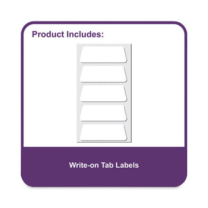 - Features snap closure and includes five dividers and adhesive label tabs.