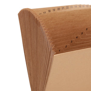 The perfect solution for organization you can take with you, Smead's Kraft Expanding File is designed to help you organize large amounts of paperwork that need to be transported quickly or file material without a file cabinet. Letter size expanding file with a protective flap and an elastic cord closure. Kraft stock provides a professional appearance, making this expanding file a recognizable favorite for easy filing and organizing. A sturdy flap with an elastic cord closure adds protection and security, allowing you to confidently carry your documents with you wherever you go. Full-height gussets reinforced with clear poly tape at the top provide increased durability, along with double-thick front and back panels with heavy reinforcement liner board. Preprinted indexes for easy filing.