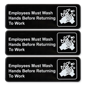 Indoor/Outdoor Restroom with Braille Text, 6" x 9", Black Face, White Graphics, 3/Pack