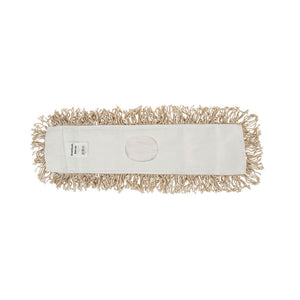 Ten-ply, Hygrade white cotton, cut-end design enhances durability while minimizing snags. Quick-drying, absorbent, slot pocket style with synthetic backing. Used for attaching a mop handle and dusting floors. Works with spray or liquid dust mop treatment and other solutions used to dust floors and add shine. Great for general purpose cleaning and wiping floor surfaces of various materials. Mop handle and dust mop frame are sold separately.