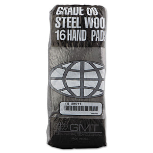 Industrial-Quality Steel Wool Hand Pads, #00 Very Fine, Steel Gray, 16 Pads/sleeve, 12/sleeves/carton