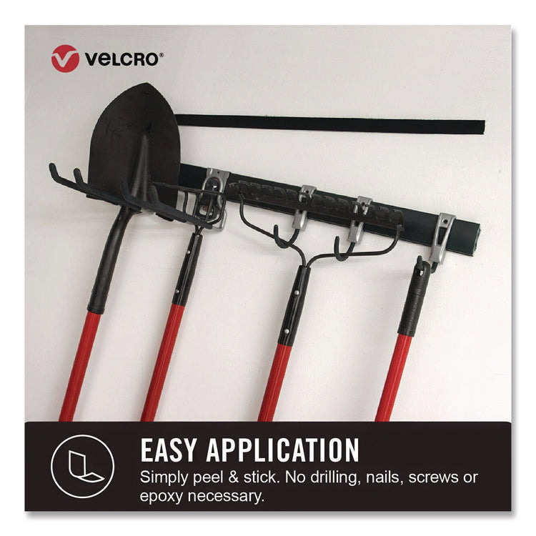 Extra strong hook and loop fasteners hold up to 10 lbs. Waterproof adhesive. Ideal for indoor or outdoor use. Sticks to most surfaces, including plastic. Excellent for indoor or outdoor use where extra holding power is needed.