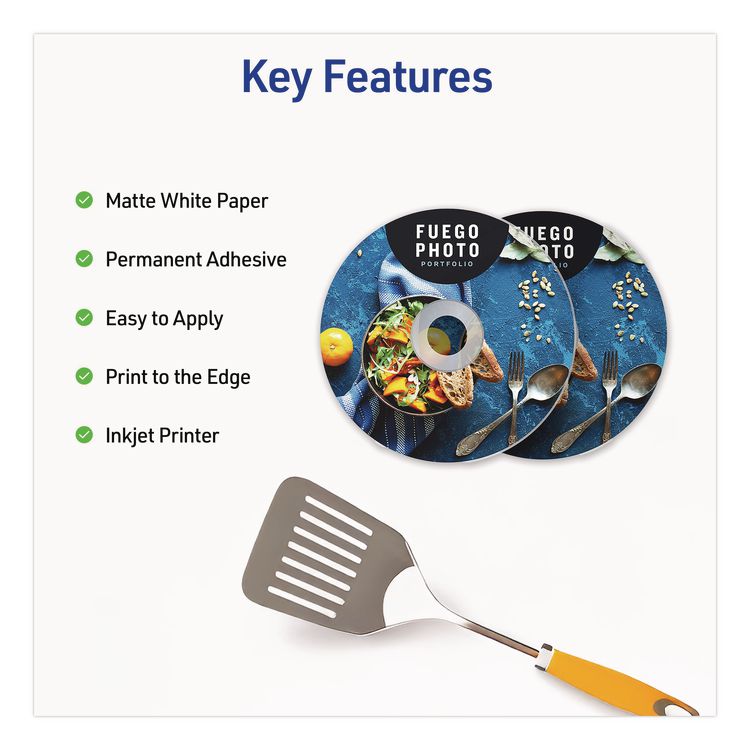 These CD labels allow you to create custom-made, professional-looking labels with a printed appearance for your business. Labels feature a unique, patented design which centers labels using a standard jewel case, and they're guaranteed not to lift, peel off or wrinkle. With free designs, QR codes, and templates from Avery® Design & Print, you can jazz up each label with high-resolution photos and graphics and then print them in minutes. 8.5" x 11" sheets.