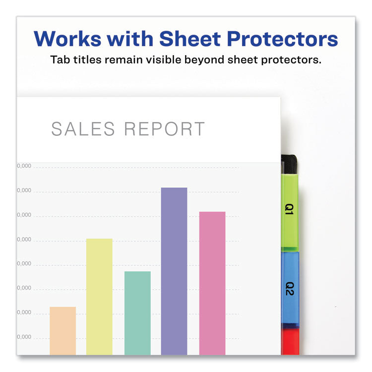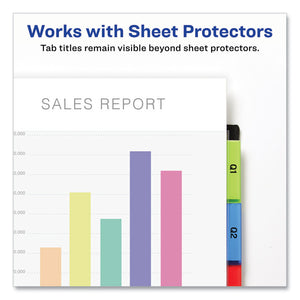- Multicolored dividers have tabs that are bigger, providing 50% more writing space than standard tabs.