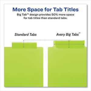 Keep papers safe and secure with these Insertable Plastic Dividers. They offer storage space along with extra large tabs in eye-catching colors for quick, easy reference. Each divider features three pockets constructed in durable plastic to accommodate loose papers up to 8 1/2" x 11" without folding or punching. The unique Corner Lock® tab helps keep your papers in place. Big Tab™ multicolored dividers have tabs that are bigger, providing 50% more writing space than standard tabs. Three-hole punched and ready-to-use. Now that's a big idea. Handwrite or print inserts on laser and inkjet printers.