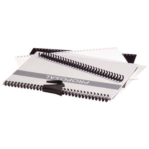 Quickly and easily put together a bound presentation using this three-piece DIY kit. No binding machine required! Kit includes ProClick® binding spines, pre-punched covers, pre-punched paper and a zip tool. Simply print out your presentation materials on the pre-punched paper and snap on the covers and spines. ProClick® spines allow for easy binding without a machine or tools—they simply snap open and close by hand, allowing you to add or remove pages on the fly.